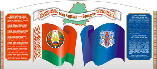 Стенд "Герб, флаг, гимн с описанием РБ и Минска". Ширина: 2260мм. Высота: 1000мм.